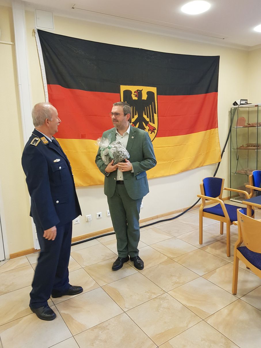 Auch Bürgermeister Lierenfeld erhielt eine Würdigung, den Großen Coin des Bundeswehrbeauftragten NRW des Volksbundes, für seine Unterstützung der Reservistenkameradschaft für deren ehrenamtlichen Einsatz.