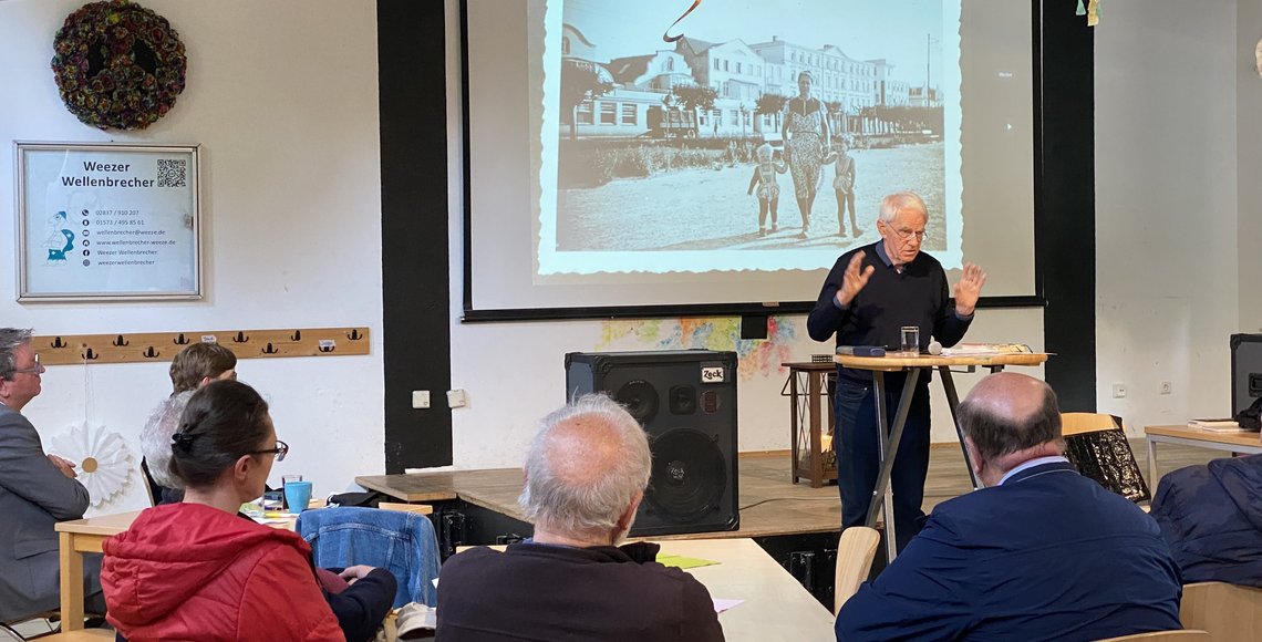 Weeze. Am 5. Mai 2025 fand im Weezer Wellenbrecher ein Zeitzeugengespräch mit dem ehemaligen Geschichtslehrer Jörg Baden statt. Genau an diesem Tag vor 80 Jahren war er mit seiner Familie und vielen anderen Flüchtlingen per Schiff in Dänemark angekommen. „Wir waren nicht willkommen“, konstatierte Jörg Baden gleich zu Beginn. Aber es war ihm wichtig, die Haltung der Dänen historisch einzuordnen. Er berichtete von der deutschen Besatzungszeit, von Kriegsverbrechen und von dem Befehl Hitlers, 250.000 deutsche Flüchtlinge aufzunehmen. Auf 17 Dänen sei ein Deutscher gekommen. Dass die Hilfsbereitschaft der Dänen sich in Grenzen hielt, wurde nachvollziehbar. Dennoch machte Jörg Baden viele positive Erfahrungen und verdankt letztlich den Dänen sein Leben.