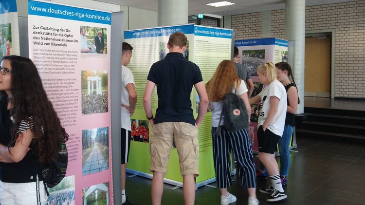Die Ausstellung kann noch bis zum 13. Juli während der Schulzeiten besichtigt werden. Die Beschäftigung mit der Geschichte der Deportationen nach Riga fand im Rahmen der Bildungspartnerschaft zwischen der Schule, dem Stadtarchiv und dem Volksbund statt. Diese Bildungspartnerschaft besteht seit 2015 und wurde in diesem Jahr offiziell verlängert.