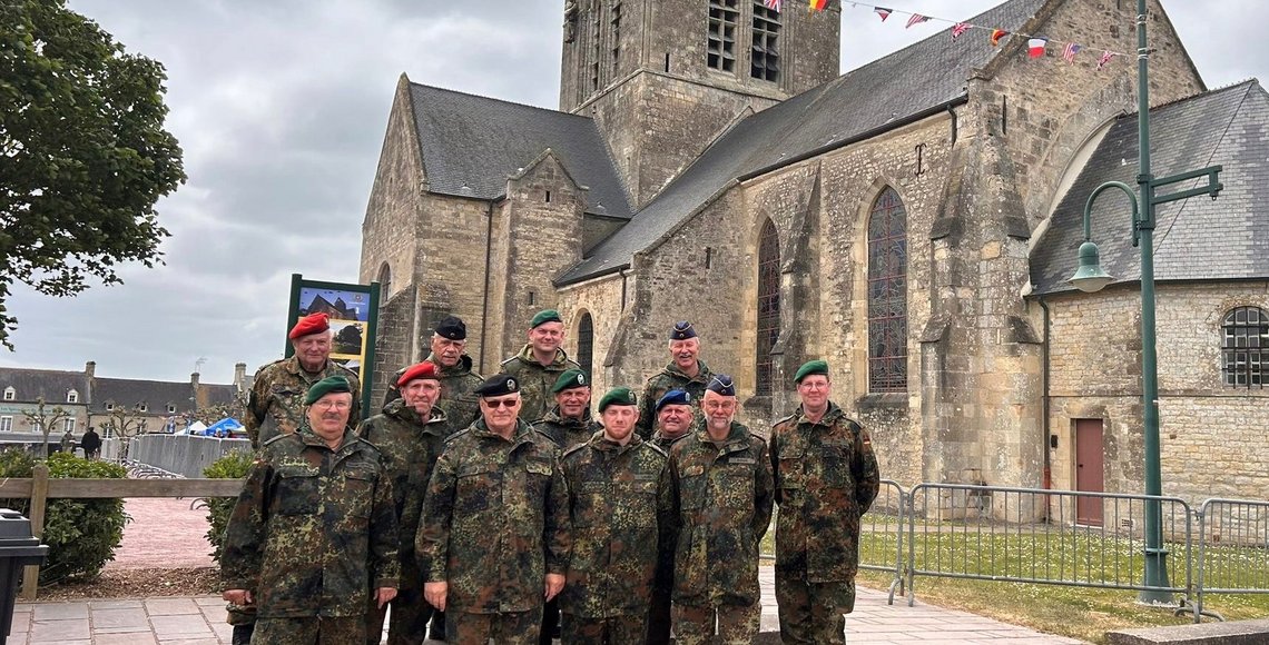 Die Dormagener Reservisten unter Führung von Stabsfeldwebel der Reserve Erik Heinen sind am 2.06.2023 in Richtung Normandie aufgebrochen. Mit weiteren Delegationen aus Deutschland nahm die 14-köpfige Abordnung aus Dormagen auf Einladung der Deutschen Botschaft in Paris an mehreren Zeremonien teil. Bereits am 2. Juni war sie zu Gast in Sainte Mère-Eglise im Département Manche und nahm dort an einer Gedenkfeier und einem Gottesdienst teil.