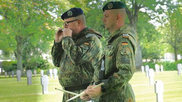 Am Nachmittag des 3.06.2023 trafen sich alle deutschen Delegationen auf der deutschen Kriegsgräberstätte in Orglandes/Manche zur stillen Trauerfeier mit dem Verteidigungsattaché der Deutschen Botschaft, Brigadegeneral Klaffus. Abschließend nach dem gemeinsamen Gebet untermalten zwei Reservisten aus Dormagen das Lied „Ich hatt‘ einen Kameraden“ musikalisch. Auf der Kriegsgräberstätte in Orglandes liegen mehr als 10.000 deutsche Soldaten begraben, die in den Kämpfen um die Normandie gefallen sind.