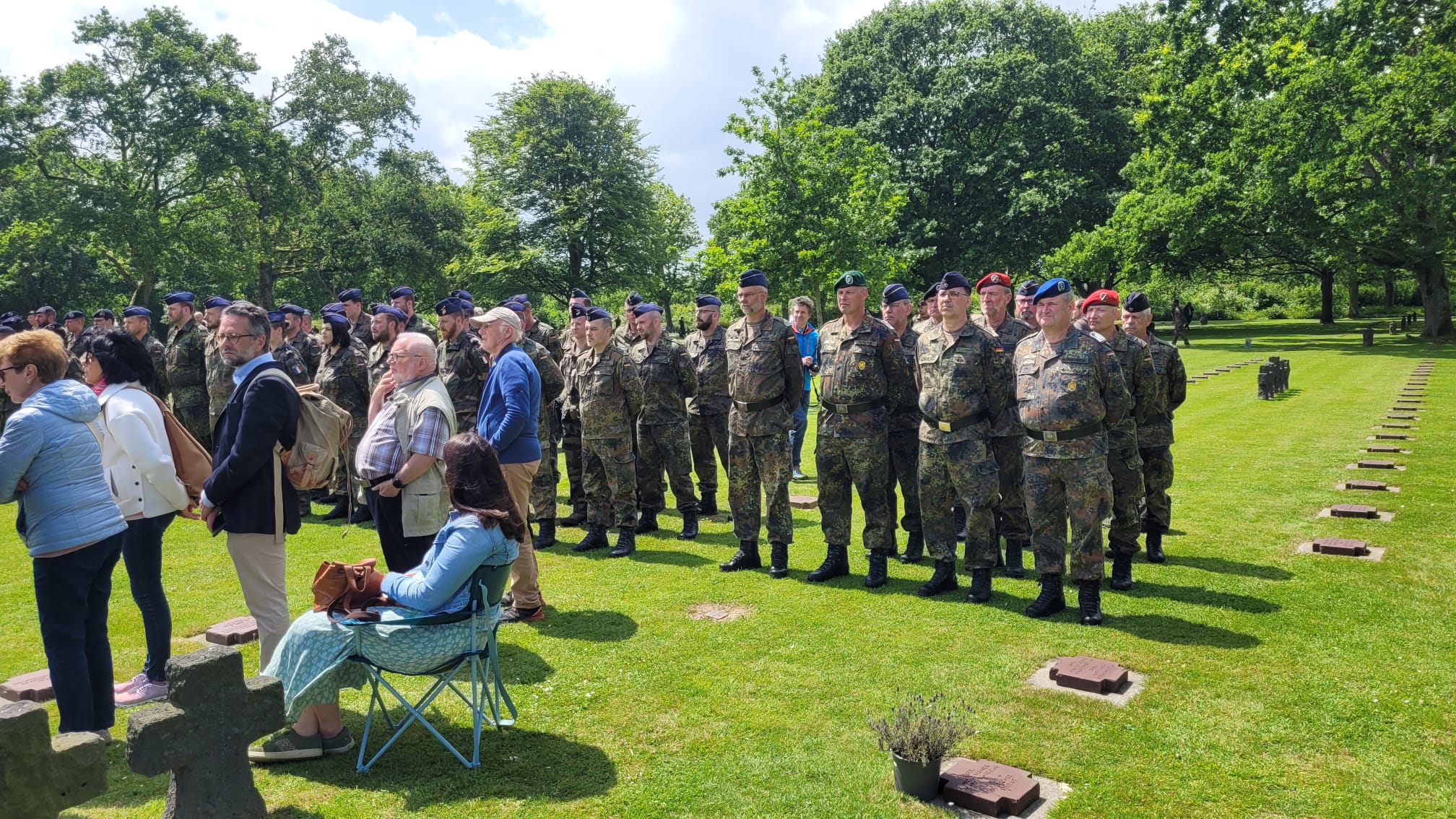 Dormagen. Normandie/Frankreich. In der Zeit vom 31.05. bis zum 07.06.2024 nahmen 15 Mitglieder der Reservistenkameradschaft Dormagen an den Gedenkzeremonien anlässlich des 80. Jahrtestages der Landung alliierter Truppen in der Normandie teil. Zusammen mit weiteren Delegationen aktiver deutscher Einheiten traten die Dormagener Reservisten unter der Leitung von Stabsfeldwebel Erik Heinen und seinem Stellvertreter Oberstleutnant Stefan Dumon bei mehreren Veranstaltungen, zusammen mit US-Kräften, Belgiern, Kanadiern, Franzosen, Niederländern und vielen mehr, an.