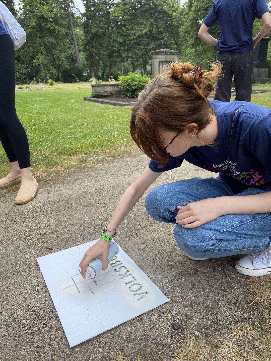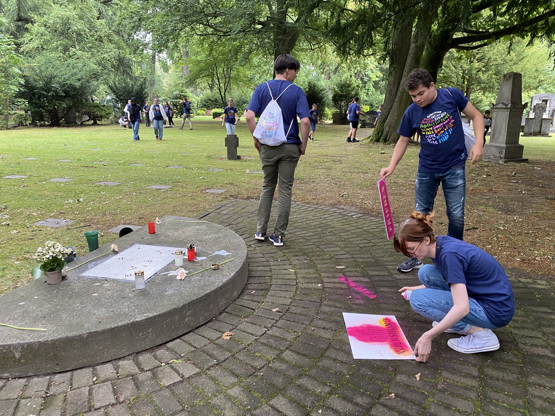 Kinga Kazmierczak, Bildungsreferentin des Volksbundes: „Der Besuch einer Kriegsgräberstätte ist fester Bestandteil eines Volksbund-Workcamps. Die Orte selbst und vor allem die Geschichten hinter den Gräbern bieten Jugendlichen einen ganz besonderen Zugang zur Geschichte der Weltkriege und des Nationalsozialismus. Sie treffen hier auf steinerne Zeitzeugen, die wir mit Hilfe von Quellen und Zusatzinformationen ‚zum Sprechen‘ bringen. Auf dem Krefelder Hauptfriedhof finden wir Denkmäler und Kriegsgräberstätten für ganz unterschiedliche Gruppen von Kriegstoten. Hier können wir die Geschichte des Zweiten Weltkrieges, des Nationalsozialismus sowie die Erinnerung daran multiperspektivisch beleuchten. Darüber hinaus haben wir mit Dr. Ingrid Schupetta eine lokale Expertin an Bord, die uns bei der Spurensuche mit ihrem Fachwissen unterstützt.“