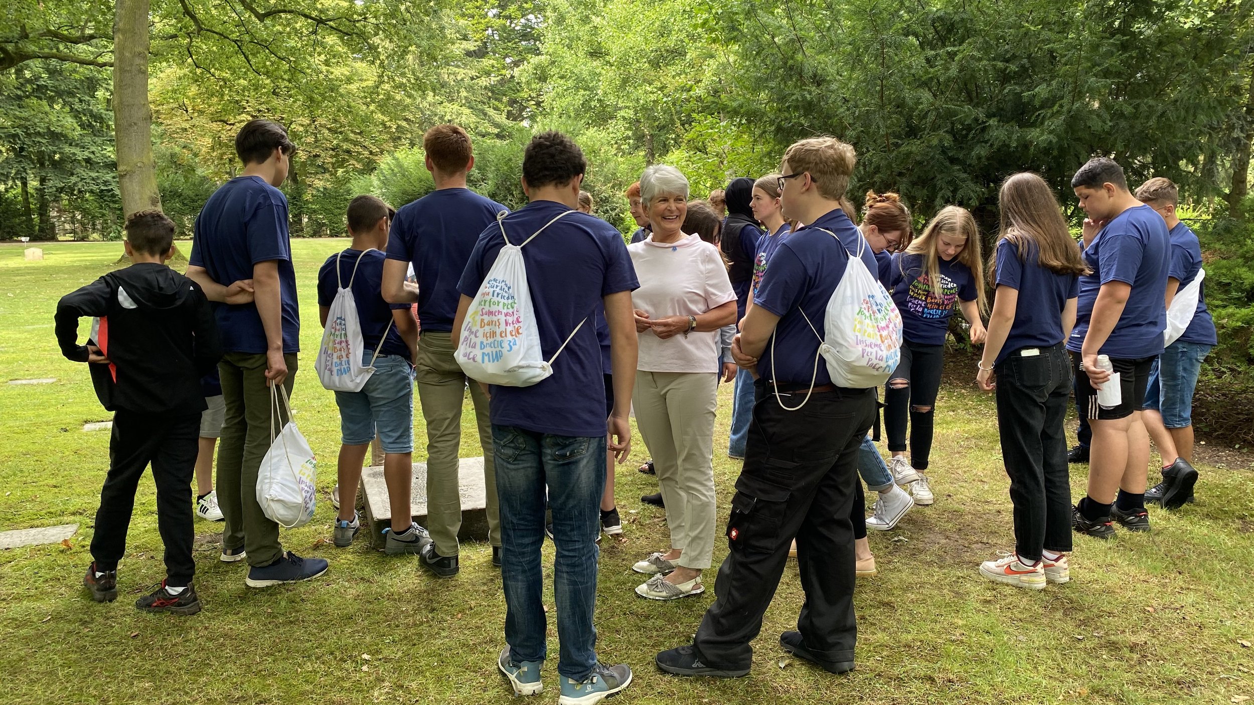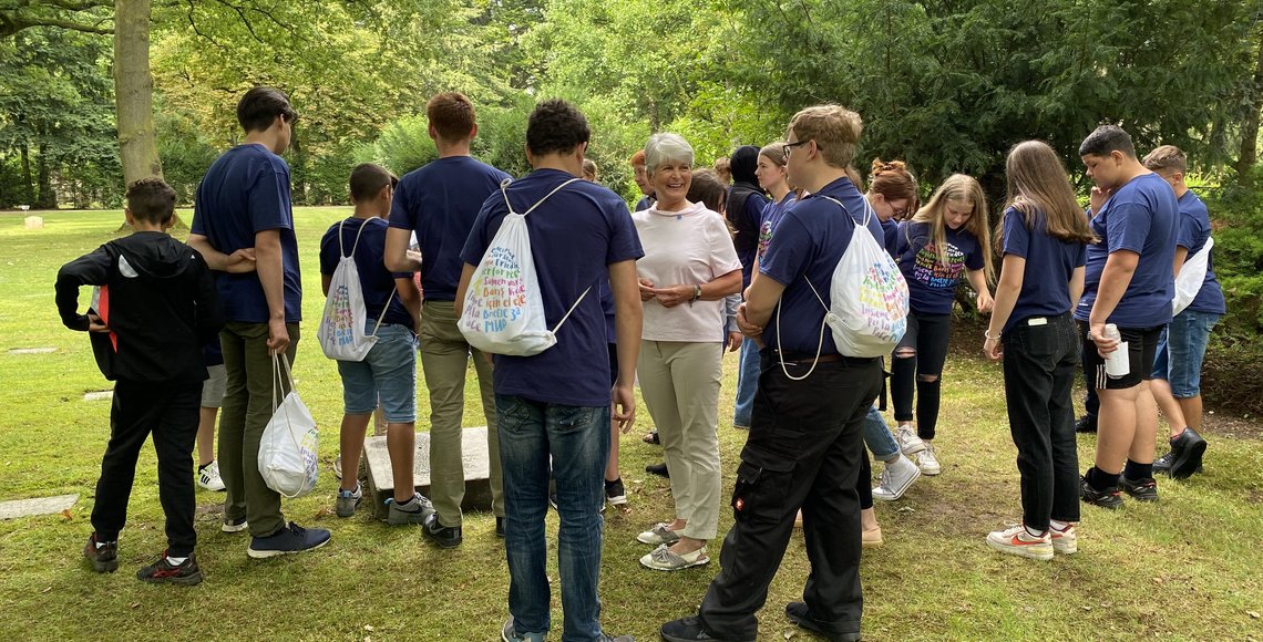Davon konnte sich Birgitta Radermacher, Vorsitzende des Volksbund-Bezirksverbandes Düsseldorf, auf dem Krefelder Hauptfriedhof persönlich überzeugen. Die Düsseldorfer Regierungspräsidentin besuchte die Jugendlichen aus Deutschland und Frankreich, die dort im Rahmen eines Workcamps auf historische Spurensuche gingen.